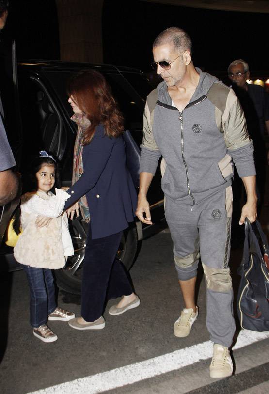 अक्षय कैजुअल लुक में थे. उन्होंने ग्रे ट्रैकसूट और स्नीकर्स पहने थे. ट्विंकल वेनी ब्लू आउटफिट में खूबसूरत नजर आ रही थीं. ट्विंकल बेटी नितारा का हाथ पकड़े हुए थीं.