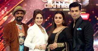 शो के जज करन जौहर और रेमो डिसूजा के साथ अनिल कपूर और माधुरी दीक्षित.