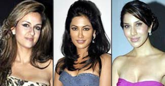 मुंबई के खार में डिजाइनर अनिता डोंगरे द्वारा खोले गए कैफे के उद्घाटन के मौके पर आई बालाएं मीडिया को पोज देतीं हुईं.
