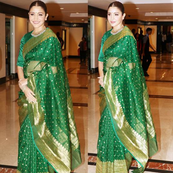 इस अवॉर्ड शो में अनुष्का हरे और गोल्डन कलर की बनारसी साड़ी पहने नजर आईं.