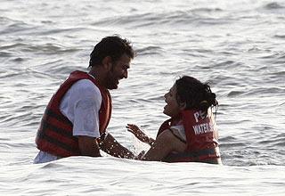 गोवा में अपनी पत्नी के साथ समंदर में मस्ती करते भारतीय क्रिकेट टीम के कप्तान महेंद्र सिंह धोनी.