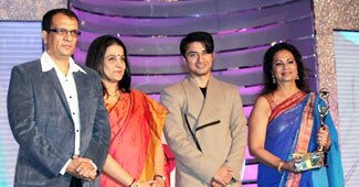 साक्षी तंवर के हाथों बेस्ट एक्ट्रेस का अवार्ड पाती विद्या बालन.