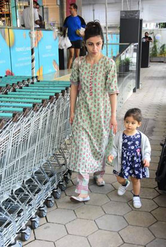 इनाया ने फ्रॉक के ऊपर लाइट ग्रे कलर का श्रग पहना हुआ है जो कि काफी क्यूट लग रहा है. नन्ही इनाया कभी अपनी मां का हाथ थामे तो कभी खुद ही संतुलन बनाकर चलती नजर आ रही हैं.