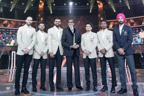 'कौन बनेगा करोड़पति' के सेट से भारतीय खिलाड़ियों के साथ शेयर की गई तस्वीरों की पोस्ट में अमिताभ ने लिखा, 'केबीसी के