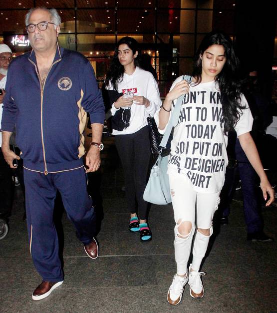 US में फैमिली वकेशन मनाने के बाद जाह्नवी कपूर और खुशी कपूर अपने पापा बोनी संग देश लौट आई हैं. हाल ही में स्टार्स को मुंबई एयरपोर्ट पर स्पॉट किया गया.