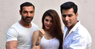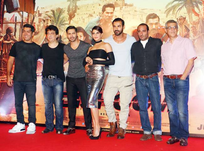 फिल्म में लीड एक्टर वरुण धवन, जॉन अब्राहम और जैकलीन फर्नांडीस इस इवेंट में कुछ इस अंदाज में कैमरे के सामने पोज देते नजर आए.