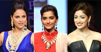इंडिया इंटरनेशनल ज्यूलरी वीक 2013 में नेहा धूपिया ने गीतांजलि ज्यूल की तरफ से रैंप पर चार चांद लगाए.