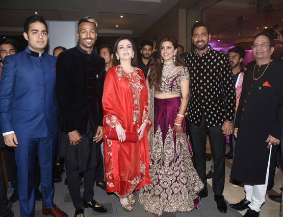 मुकेश अंबानी, नीता अंबानी आकाश और ईशा के साथ हार्दिक पांड्या.