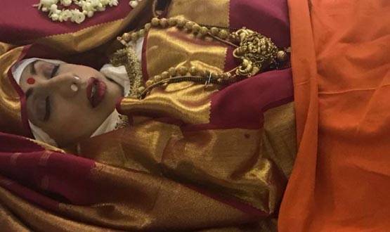 श्रीदेवी की आखिरी तस्वीर. भावुक करने वाली तस्वीर. यादगार तस्वीर. जिसने भी इस तस्वीर को देखा, एक टक निहारता ही रह गया. दरअसल, अंतिम संस्कार के लिए श्रीदेवी की पार्थिव देह को सुहागिन की तरह सजाया गया था. माथे पर डॉटेड बिंदी, लाल रंग की कांजीवरम साड़ी, होठों पर सुर्ख लाली. श्रीदेवी की इस आखिरी फोटो में एक चीज और थी जिस पर लोगों की निगाह कम पड़ी. आइए जानते हैं क्या है वह चीज...