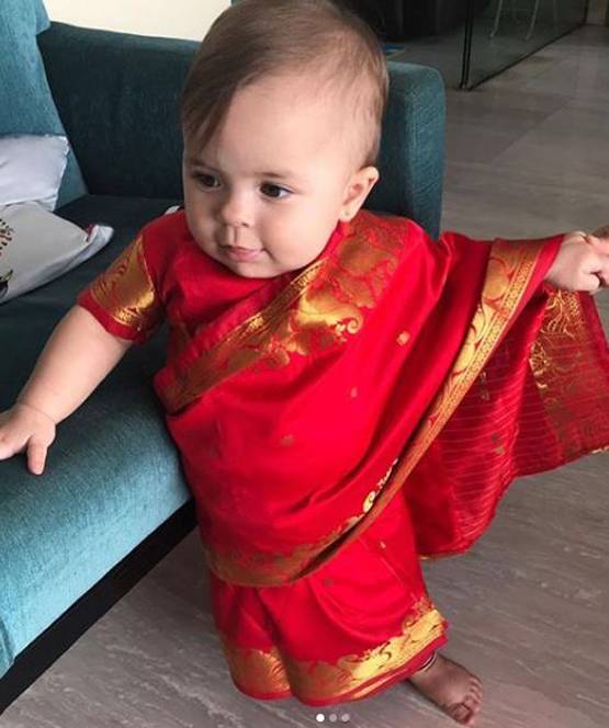 एक तस्वीर में उनकी एक बेटी लाल और सफेद रंग की पारंपरिक बंगाली साड़ी में नजर आ रही हैं. लाल रंग की साड़ी और स्टाइलिश ब्लाउज में दोनों बच्चियों की यह तस्वीर सोशल मीडिया पर काफी वायरल हो रही है.