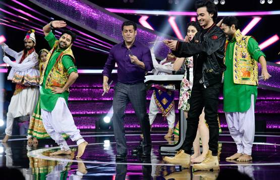 फोटो में सलमान खान, मीका सिंह और मनीष पॉल डांस स्टेप करते हुए दिख रहे हैं.