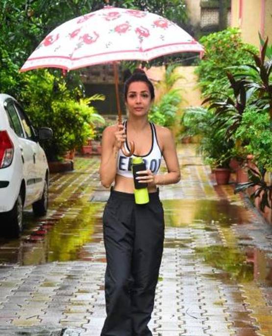 मुंबई में इन दिनों जमकर बारिश हो रही है. लेकिन मुंबई की भारी बारिश भी मलाइका की फिटनेस रूटीन में अड़चन नहीं बन पाई. तस्वीरों में आप देख सकते हैं कि मलाइका बारिश में हाथ में छाता लिए ही अपनी योगा क्लास के लिए निकल पड़ी हैं.