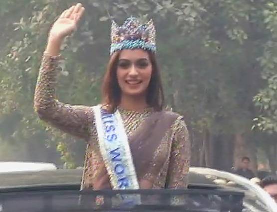 मुंबई में शानदार रोड शो के बाद मिस वर्ल्ड बनीं मानुषी छि‍ल्लर ने अपने घर दिल्ली आकर भी रोड शो किया.