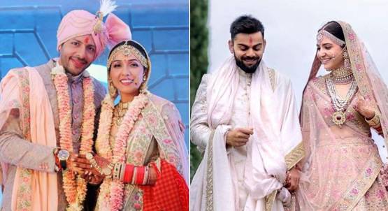 नीति और अनुष्का के लहंगे के कलर में भी समानता देखने को मिलती है. सिंगर के पिंक फ्लोरल लहंगे की चुन्नी का गेटअप भी अनुष्का के वेडिंग अटायर से मेल खाता है.