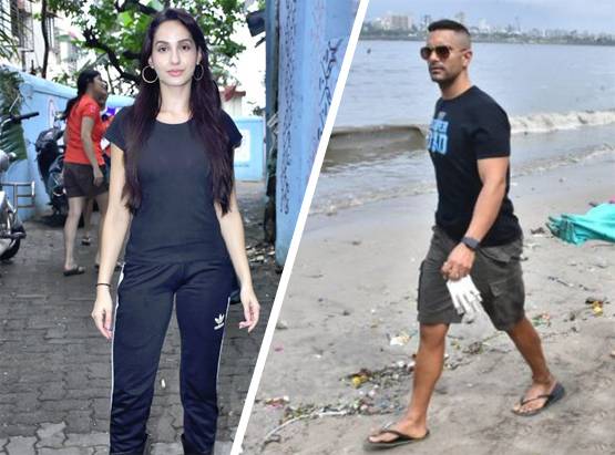 (महीम बीच पर सफाई करतीं नोरा फतेही)