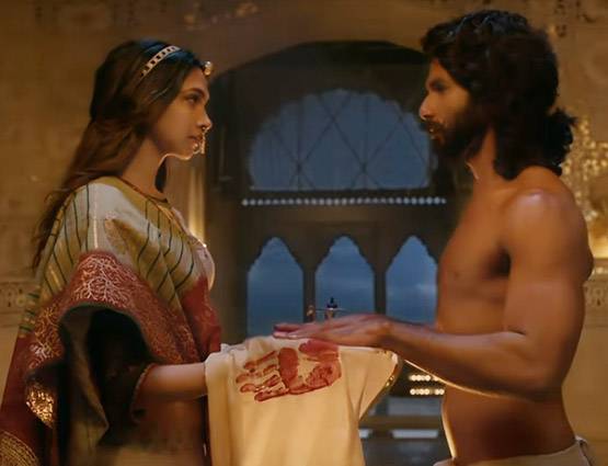 फिल्म के दौरान शाहिद कपूर के साथ दीपिका के ये सीन क्लासिकल रोमांटिक नजर आते हैं. यहां दीपिका अपनी आंखों के सहारे सबकुछ कहती नजर आती हैं. उस सीन के दौरान उनकी आँखों की गति देखते ही बनती है जब वो रेशम के कपड़े पर पति के हाथों की छाप ले रही हैं. वो एक निश्चित अंत को लेकर दुखी हैं, लेकिन उनकी आंखों में पति के प्रति समर्पण और राजपूतानी गौरव के आंसू भरे हुए हैं. इस दौरान सारे आदेश निर्देश भावुक आंखों से ही बयान किए जाते हैं.