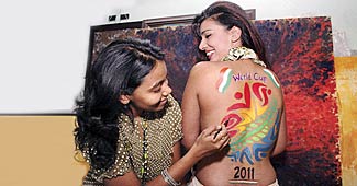 कॉलगेट के उत्पाद के विज्ञापन के मौके पर शाहिद कपूर के साथ टीम इंडिया के खिलाड़ी गौतम गंभीर, जहीर खान व वीरेंद्र सहवाग.