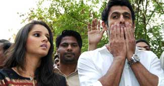 हैदराबाद में अपने पति शोएब मलिक के साथ टेनिस स्टार सानिया मिर्जा. शादी के बाद वह फिर से टेनिस की दुनिया में लौट आई है.