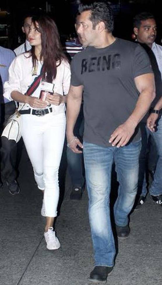 एयरपोर्ट पर सलमान और जैकलीन दोनों ही कैजुअल लुक में नजर आए.