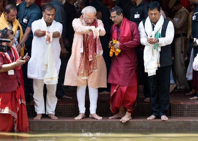 पीएम मोदी के साथ असम में बीजेपी के मुख्यमंत्री पद के उम्मीदवार और केंद्रीय मंत्री सर्वानंद सोनोवाल ने भी कामाख्या देवी के दर्शन किए.