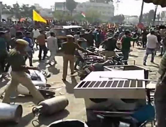 उपद्रवियों ने पहले रोडवेज की एक बस को फूंक दिया. फिर सोहना रोड पर