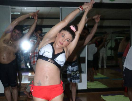 अपनी बेबाकी के लिए मशहूर राखी सावंत ने वर्ल्ड योगा डे को प्रमोट किया. मुंबई के अंधेरी वेस्ट इलाके में स्िथत मंजीत योगा स्टूडियो में योगा करती नजर आई.