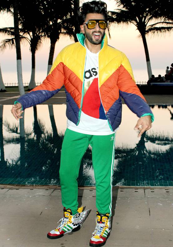 रणवीर सिंह बॉलीवुड में अपने अतरंगी फैंशन सेंस के लिए जाने जाते हैं. चैट शो पर रणवीर कलरफुल शूज पहनकर गए. फोटोग्राफर्स को पोज देते हुए रणवीर ने खुद सबका ध्यान अपने जूतों की तरफ दिलाया.