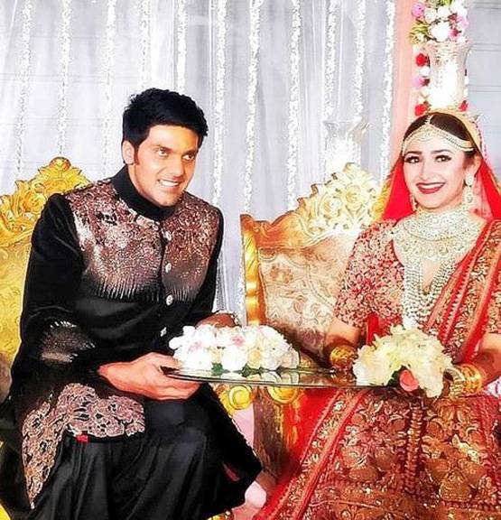 फोटो में आर्या मैरिज कॉन्ट्रैक्ट यानि निकाहनामा साइन करते हुए. दोनों की लव स्टोरी फिल्म गजनीकांत की शूटिंग के दौरान शुरू हुई थी.