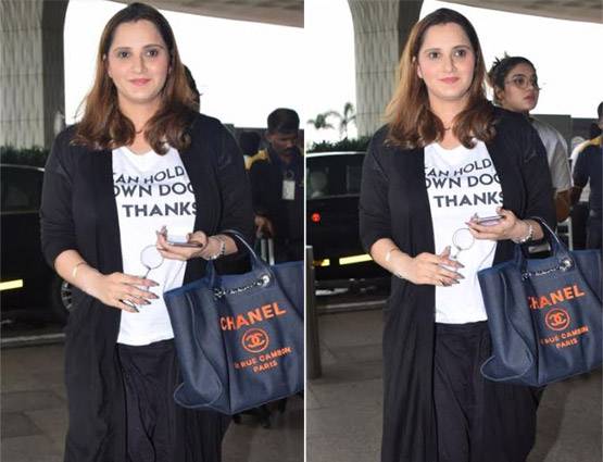 सानिया ने व्हाइट टी-शर्ट के साथ लॉन्ग श्रग और ट्राउजर पहना था. उनके हाथों में ब्लू chanel का बैग उनके लुक को क्लासी बना रहा था. इस लुक को उन्होंने ब्लैक बैली के साथ कंप्लीट किया है.