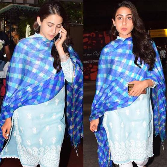 लखनवी कुर्ती और व्हाइट चूड़ीदार के साथ ब्लू दुपट्टे में सारा बेहद खूबसूरत नजर आईं.