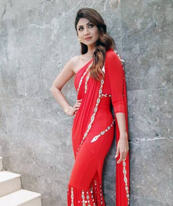 इस आउटफिट में शिल्पा बेहद ही ग्लैमरस लग रही हैं. साड़ी के साथ उन्होंने वन शोल्डर ब्लाउज कैरी किया हुआ है. इस पूरे लुक को बेहतर बनाने के लिए एक्ट्रेस ने स्मोकी आई मेकअप और न्यूड कलर की लिपस्टिक लगाई थी.