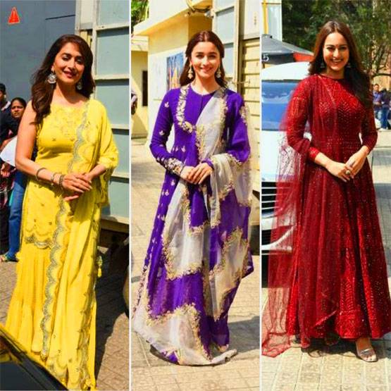 आलिया ने वैसा ही गेटअप लिया. वो पर्पल और व्हाइट कलर के अनारकली सूट में