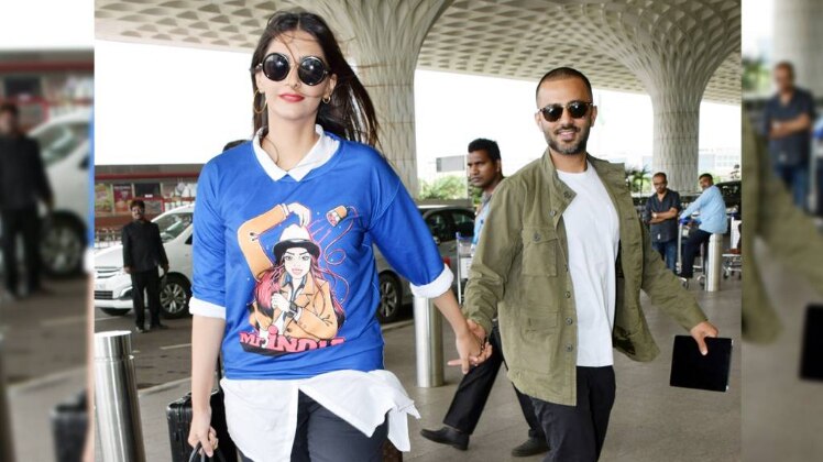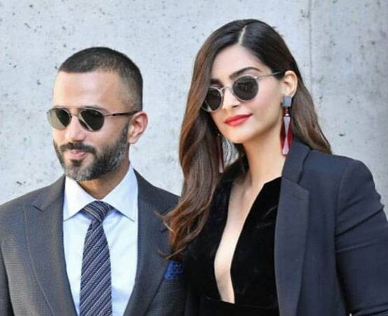 सोनम और आनंद एक जैसे राउंड शेप सनग्लासिस पहने दिखे. कपल की ये ट्विनिंग बेहद आकर्षक दिखी.
