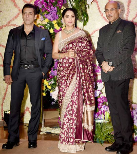 डायरेक्टर सूरज बड़जात्या के बेटे देवांश बड़जात्या की हाल ही में शादी हुई. ग्रैंड वेडिंग के बाद शुक्रवार को हुए रिसेप्शन में बॉलीवुड सेलेब्स ने शिरकत की. शादी में सलमान खान, माधुरी दीक्षित, सोहेल खान, अभिषेक बच्चन, रेखा समेत कई मशहूर हस्तियां पहुंचीं.