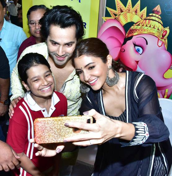 अनुष्का शर्मा-वरुण धवन इन द‍िनों अपनी आने वाली फिल्म "सुई धागा" के प्रमोशन में व्यस्त हैं. हाल ही में प्रमोशन के लिए फिल्म की स्टार कास्ट मुंबई में आयोज‍ित गणेश उत्सव के एक इवेंट पर पहुंची.