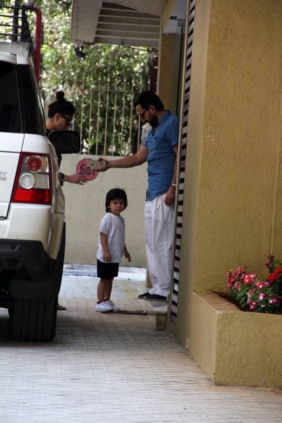 तैमूर अली खान प्लेन व्हाइट टी-शर्ट और ब्लैक शॉर्ट्स में दिखाई दे रहे हैं. वहीं बेबो ऑफ व्हाइट पेंट्स और ब्लैक टी में बेहद खूबसूरत लग रही हैं.