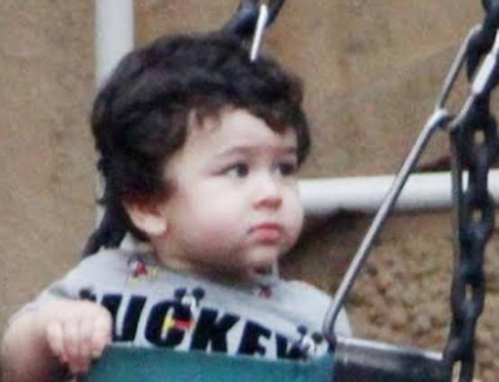 तस्वीरों में तैमूर ने ग्रे कलर की टी-शर्ट और मरून पैंट पहनी है. बगल में उनकी नैनी खड़ी हैं जो कि उन्हें झूला झुला रही हैं.