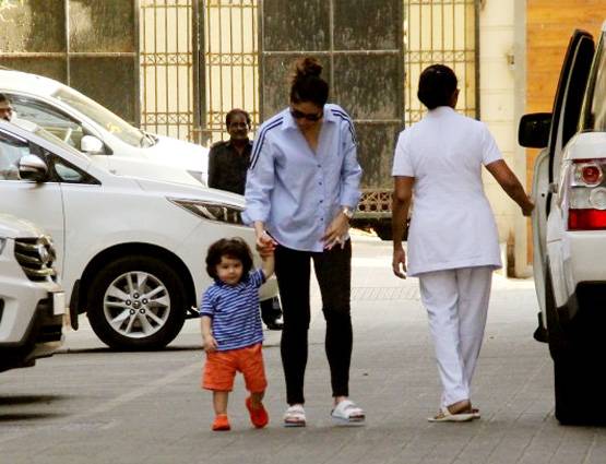तैमूर ने ऑरेंज पैंट और ब्लू टीशर्ट पहना था. करीना ब्लैक जैगिंग और ब्लू शर्ट में नजर आईं.