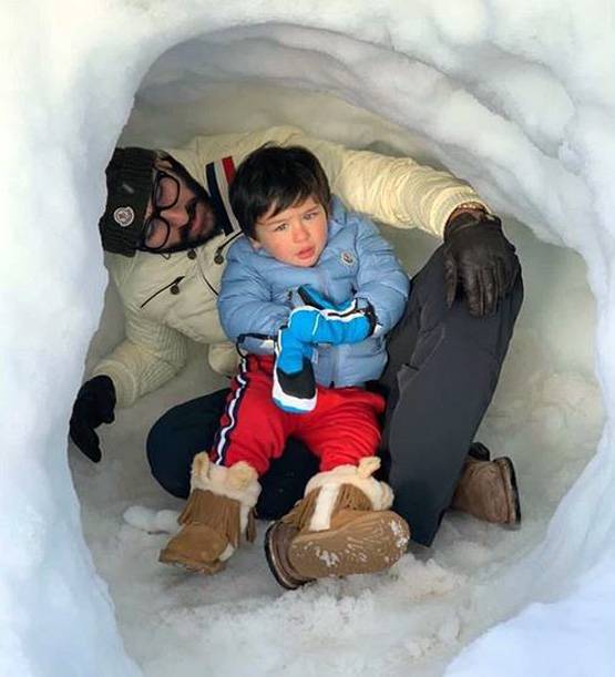 Taimur Holiday latest photo बॉलीवुड के मोस्ट पॉपुलर स्टारकिड तैमूर स्विट्जरलैंड की बर्फीली वादियों में सैफ अली खान और करीना कपूर के साथ हॉलिडे एंजॉय कर रहे हैं. सोशल मीडिया पर तीनों के फैमिली ट्रिप की तस्वीरें छाई हुई हैं. एक नई फोटो सामने आई है जिसमें तैमूर बर्फ की गुफा में पापा सैफ की गोद में बैठे हुए हैं. ब्लू कलर की जैकेट, रेड पैंट और ब्राउन बूट में तैमूर ने ठंड से बचने का पूरा जुगाड़ कर रखा है.