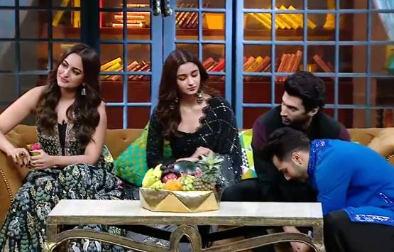 कपिल शर्मा शो में शनिवार रात फिल्म कलंक की टीम ने रंग जमाया. शो पर बतौर मेहमान वरुण धवन, आलिया भट्ट, सोनाक्षी सिन्हा और आदित्य रॉय कपूर ने शिरकत की. शो पर मस्ती के मूड में नजर आए सितारों के बीच दोस्ती का गहरा रिश्ता नजर आया. वरुण धवन ने तो शो में आदित्य कपूर के जूते के फीते भी बांधे.