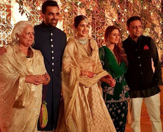 मुंबई के कोलाबा में ताज होटल में आयोजित रिस्पेशन पार्टी में जहीर नीलें रंग की शेरवानी पहने दिखे. वहीं सागरिका गोल्डन रंग के लहंगे में बेहद खूबसूरत नजर आईं.