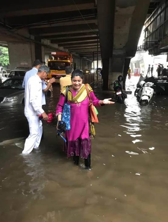 इस बीच दिग्गज एक्ट्रेस रेणुका सहाणे की एक तस्वीर सोशल मीडिया पर वायरल हो रही है जिसमें वह घुटनों तक भरे पानी में चलती नजर आ रही हैं.