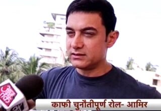 फुटबॉल पर किक जमाने की कोशिश में आमिर के बेटे आजाद