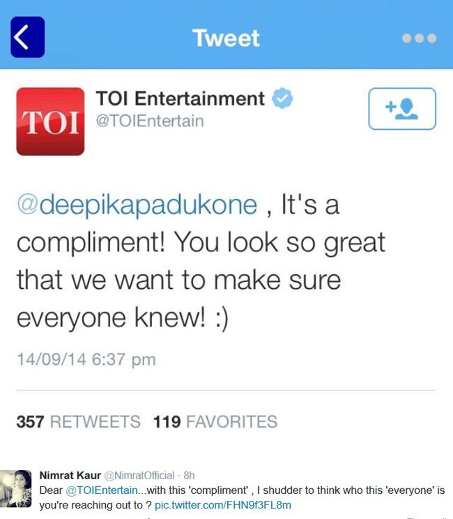 — Nimrat Kaur (@NimratOfficial) September 14, 2014