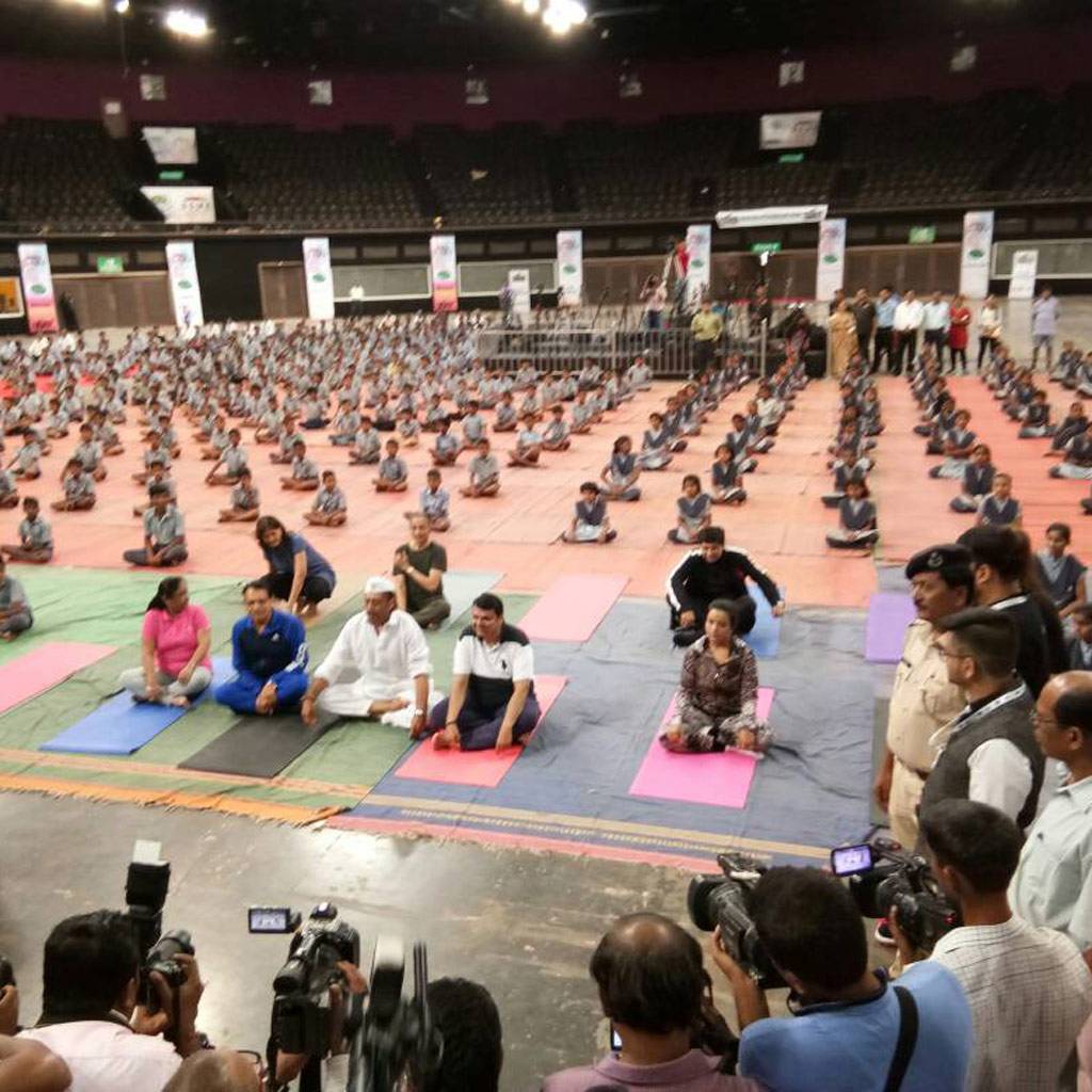 मुंबई में दिव्यराज फाउंडेशन की ओर से योग दिवस पर एक खास कार्यक्रम का आयोजन किया गया जिसमें महाराष्ट्र के मुख्यमंत्री देवेंद्र फडणवीस ने शिरकत की. आपको बता दें कि यहां सैकड़ों की संख्या में स्कूली बच्चे आए और ये बच्चे महाराष्ट्र में आत्महत्या करने वाले किसानों के बच्चे थे.