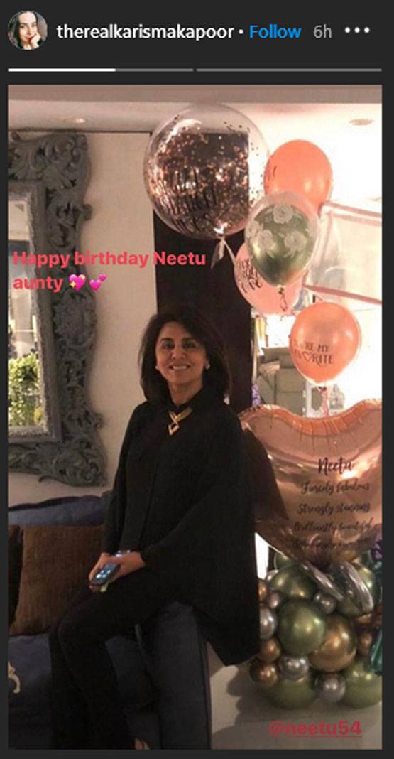 इसी तरह करीना की बहन करिश्मा ने भी अपनी चाची को इंस्टा स्टोरी पर बर्थडे विश किया. करिश्मा ने नीतू की एक तस्वीर शेयर की जिसमें पीछे काफी अच्छी डेकोरेशन हुई है और इस तस्वीर पर करिश्मा ने लिखा, "हैप्पी बर्थडे नीतू आंटी." दोनों भतीजियों ने अपनी चाची को इंस्टा स्टोरी पर विश किया है और फैन्स इन तस्वीरों को खूब पसंद कर रहे हैं.