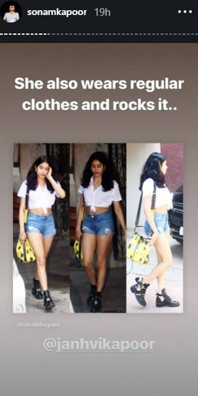 सोनम कपूर ने इंस्टाग्राम में जाह्नवी की डेनिम शॉर्ट्स में तस्वीर शेयर करते हुए लिखा, वो रेगुलर कपड़े भी पहनती है और शानदार दिखती है. सोनम कपूर ने इस तस्वीर में कटरीना का नाम तो मेंशन नहीं किया है. लेकिन इसे कटरीना की कंसर्न का जवाब ही माना जा रहा है. बॉलीवुड दीवा में कैट फाइट एक आम बात है. कटरीना कैफ और सोनम कपूर के बीच इसे साफ देखा जा सकता है.