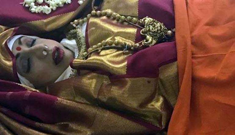 दिवंगत एक्ट्रेस श्रीदेवी की आखिरी तस्वीर ने सभी को भावुक कर दिया था. ये तस्वीर बहुत यादगार रही. उनकी इस तस्वीर से नजर हटा पाना बहुत मुश्किल था. दरअसल, श्रीदेवी के पार्थिव देह को अंतिम संस्कार के लिए सुहागिन की तरह सजाया गया था. माथे पर लाल बिंदी, लाल रंग की कांजीवरम साड़ी, होठों पर सुर्ख लाली. उनकी ये तस्वीर सोशल मीडिया पर बहुत वायरल हुई थी. इसे न्यूज एजेंसी ANI ने जारी किया था.