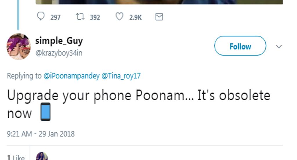 लेकिन पूनम पांडे की सीख फैंस को पसंद नहीं आई. कुछ ने बोल्ड वीडियो की वजह से पूनम को ट्रोल करना शुरू कर दिया तो कुछ ने उन्हें दूसरी सलाह भी दी. एक ट्विटर यूजर ने कहा, पूनम हमें सलाह देने से अच्छा है पहले अपना मोबाइल फोन बदल डालो. अब तो इसके कई लेटेस्ट वर्जन आ चुके हैं.