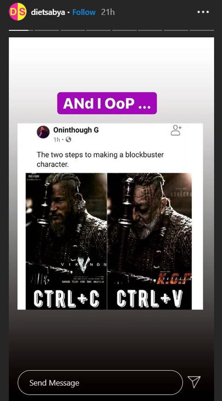 इंस्टाग्राम पेज डाइट सब्या ने संजय दत्त के पोस्टर के साथ वाइकिंग्स नाम की वेबसीरीज का पोस्टर भी शेयर किया है और केजीएफ चैप्टर 2 के मेकर्स पर लुक कॉपी करने का आरोप लगाया है. हालांकि फिल्म के डायरेक्टर नील बता चुके हैं कि संजय दत्त का लुक कैरेक्टर रागनर लोथब्रोक से काफी इंस्पायर्ड है. इस शो के कई सीजन भी रिलीज हो चुके हैं.